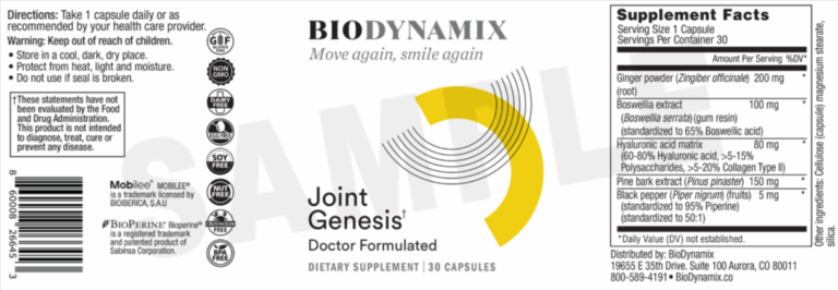 In addition, Joint Genesis helps regulate the body’s natural inflammatory response, reducing swelling and discomfort often linked to joint pain.